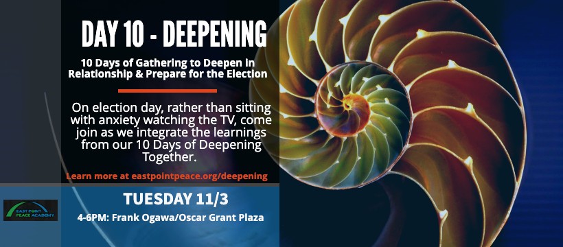 Deepening Together is a series of gatherings for 10 consecutive days leading into election day, with each day having a different theme.