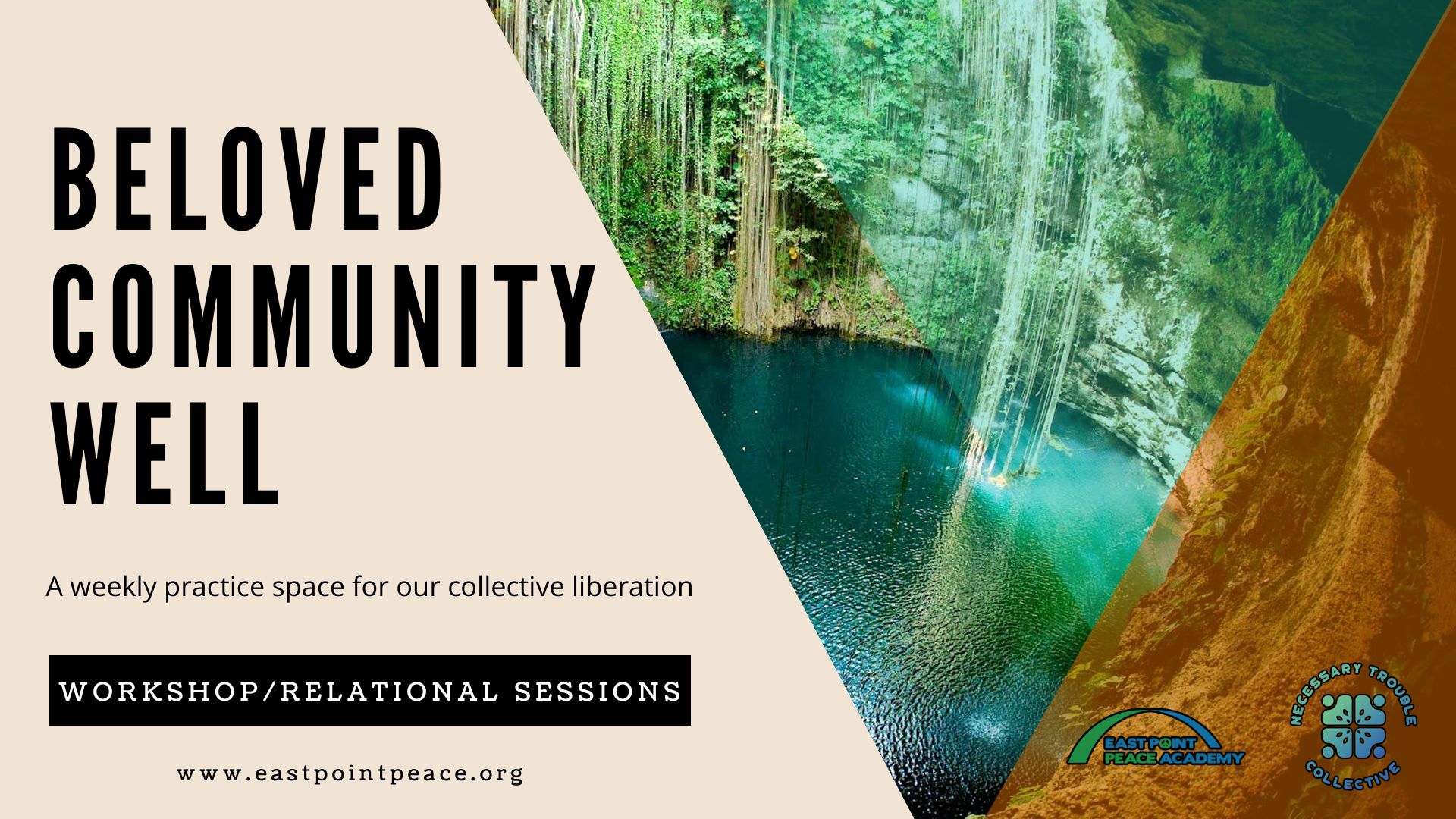 Beloved Community Well is a weekly practice space to build skills and connections for people committed to healing, justice and wholeness. Each week we will rotate between workshop sessions where facilitators will offer content on topics relevant to nonviolent movement work and relational sessions where people can give and receive support. This project is a collaboration between East Point Peace Academy and the Necessary Trouble Collective. Learn more.