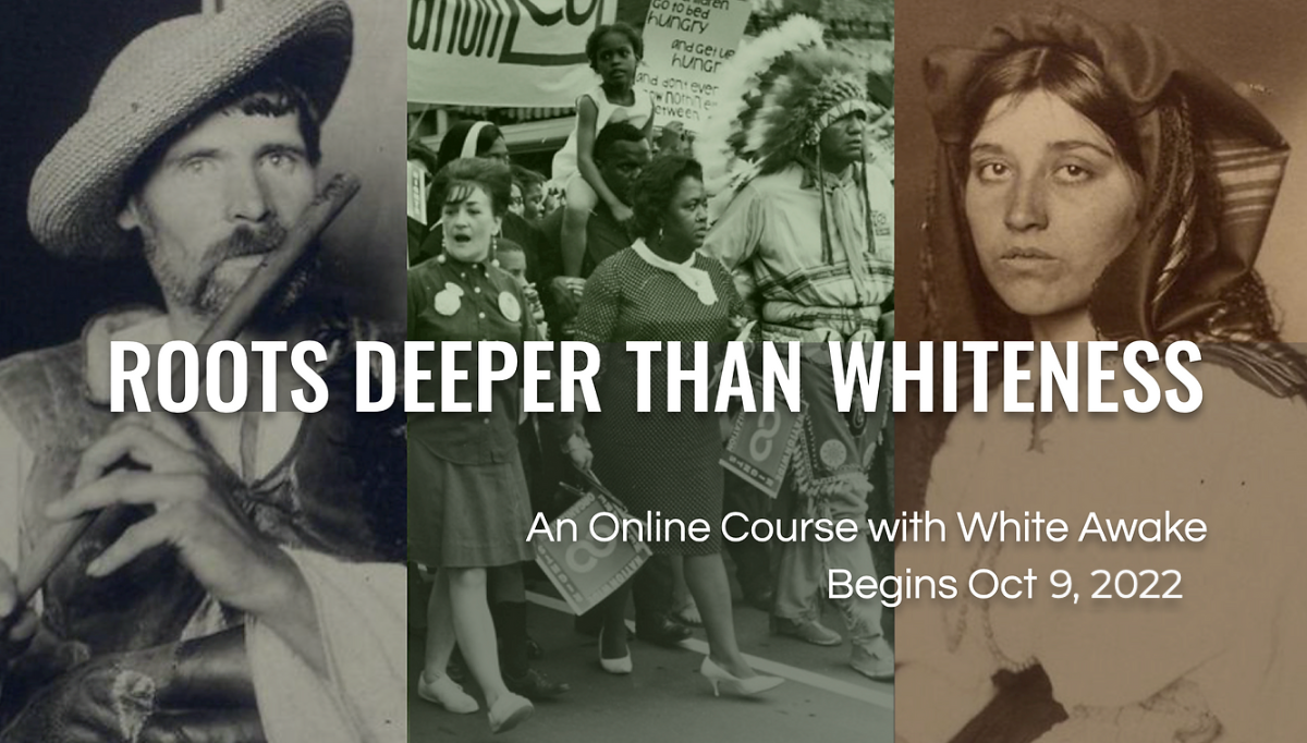 Roots Deeper than Whiteness is White Awake’s annual foundations course, designed to help white people reject the role we have been groomed to fill and build a healthy sense of self rooted in liberatory knowledge and practice. Many of our other online courses expand on the three essential themes that are covered in the Roots Deeper curriculum: developing emotional resilience and an innate, political wisdom; connecting personal and family stories to a broader historical and political analysis; and familiarization with basic elements of solidarity-based action for positive social change.